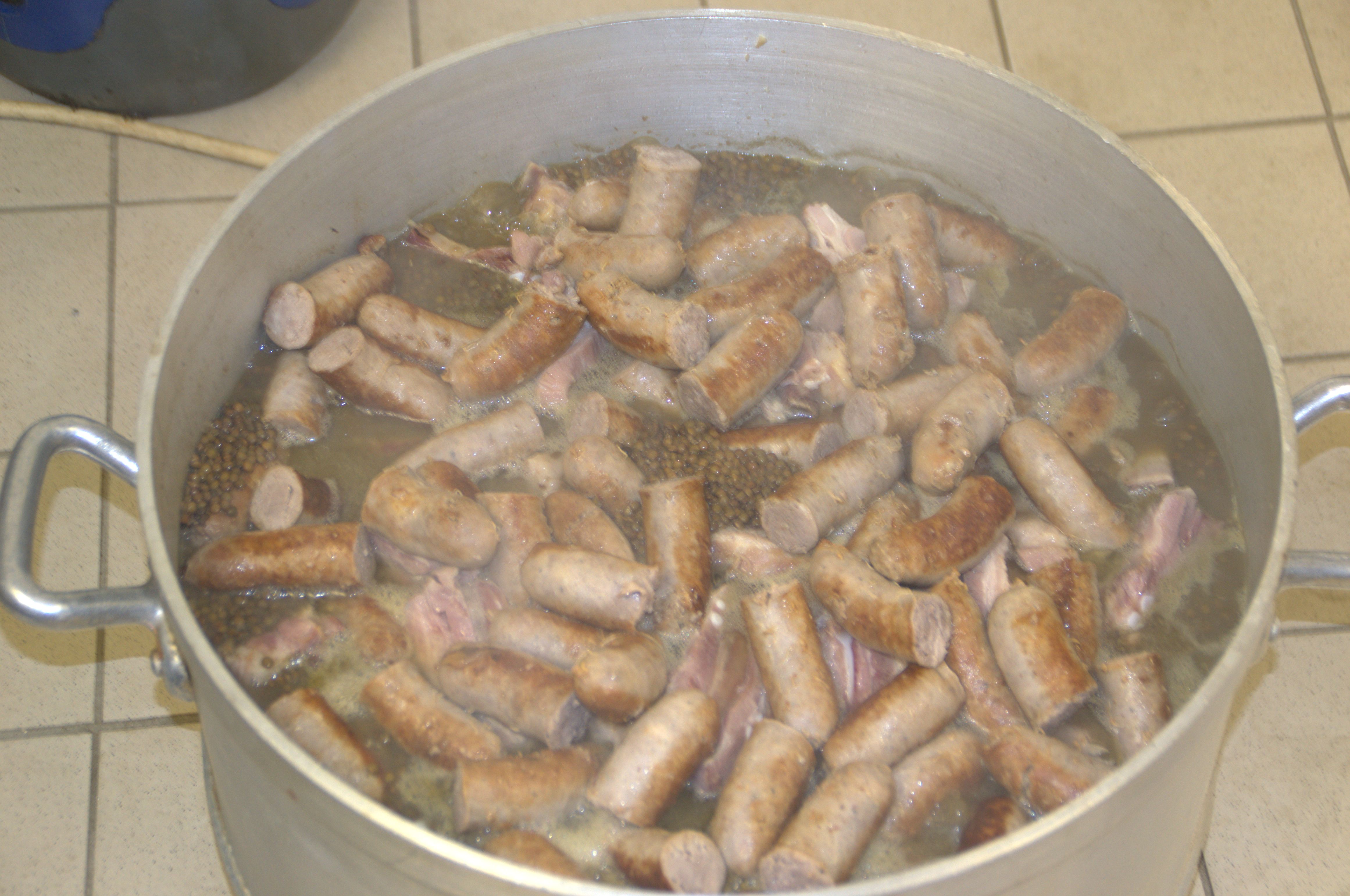au menu du soir : petit salé, saucisses et lentilles de la Planèze