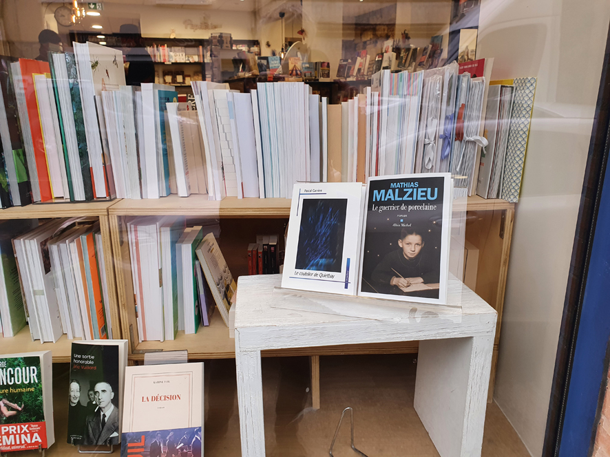 En vitrineLe livre de Pascal Carrère, Le coutelier de Quietbay, coup de cœur et en vitrine de la librairie Effets de Pages à L’Isle Jourdain (Gers)